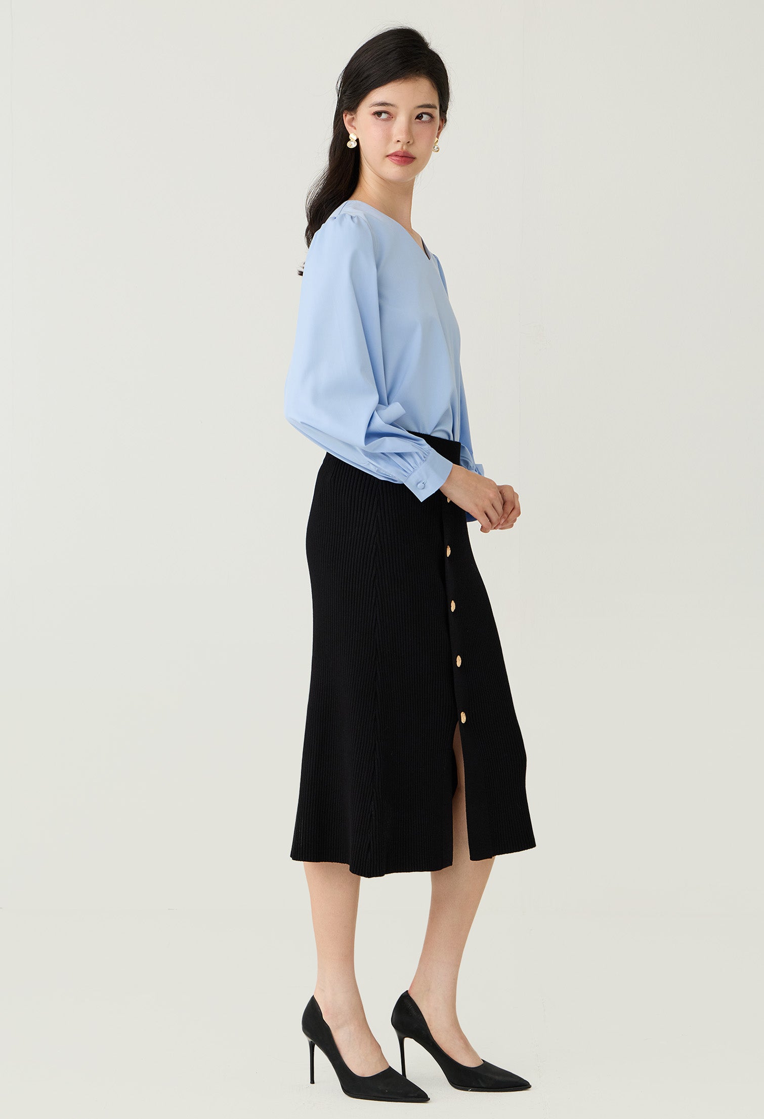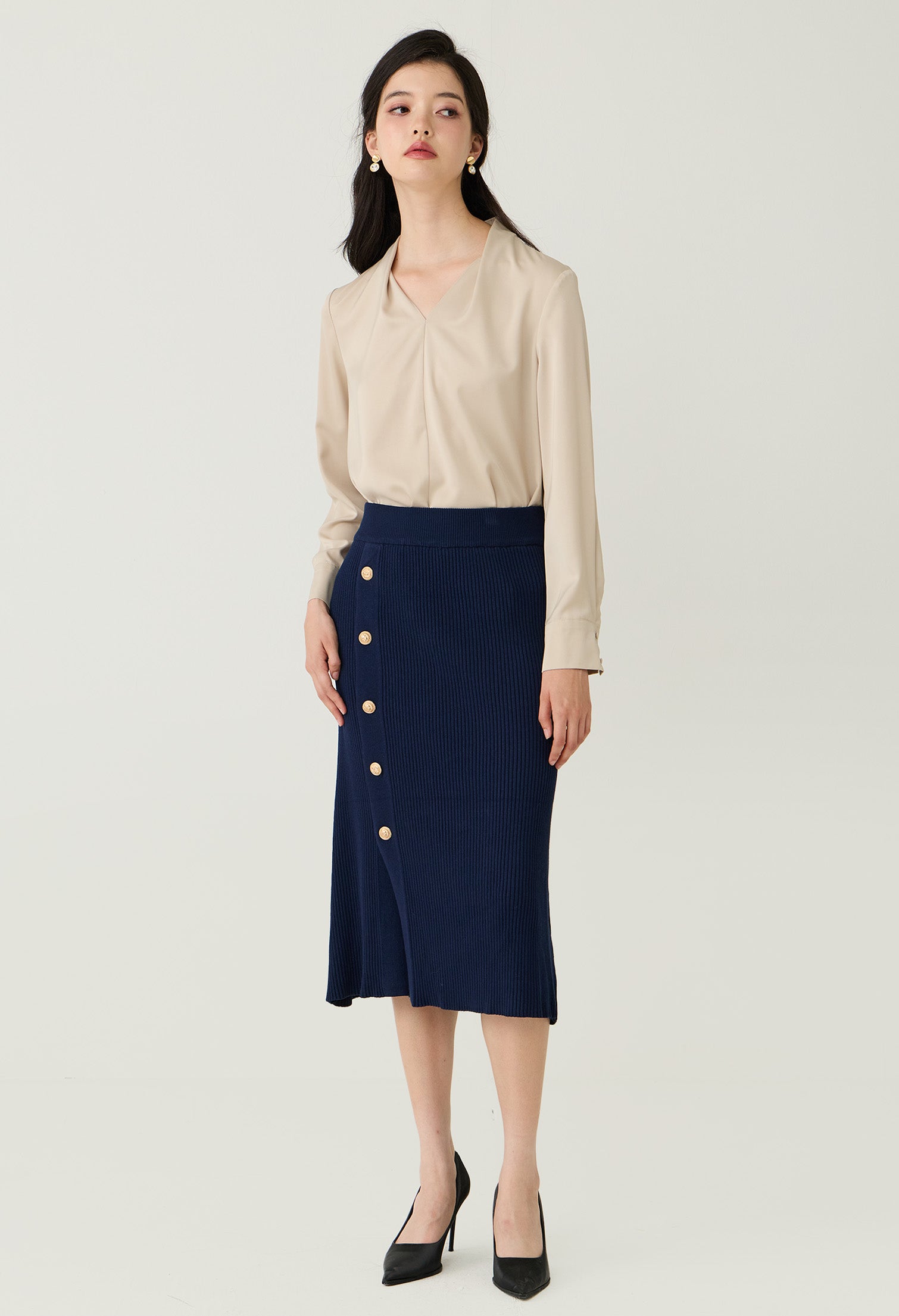 Home New Arrivals Buttons Ribbed Knitted Midi Skirt