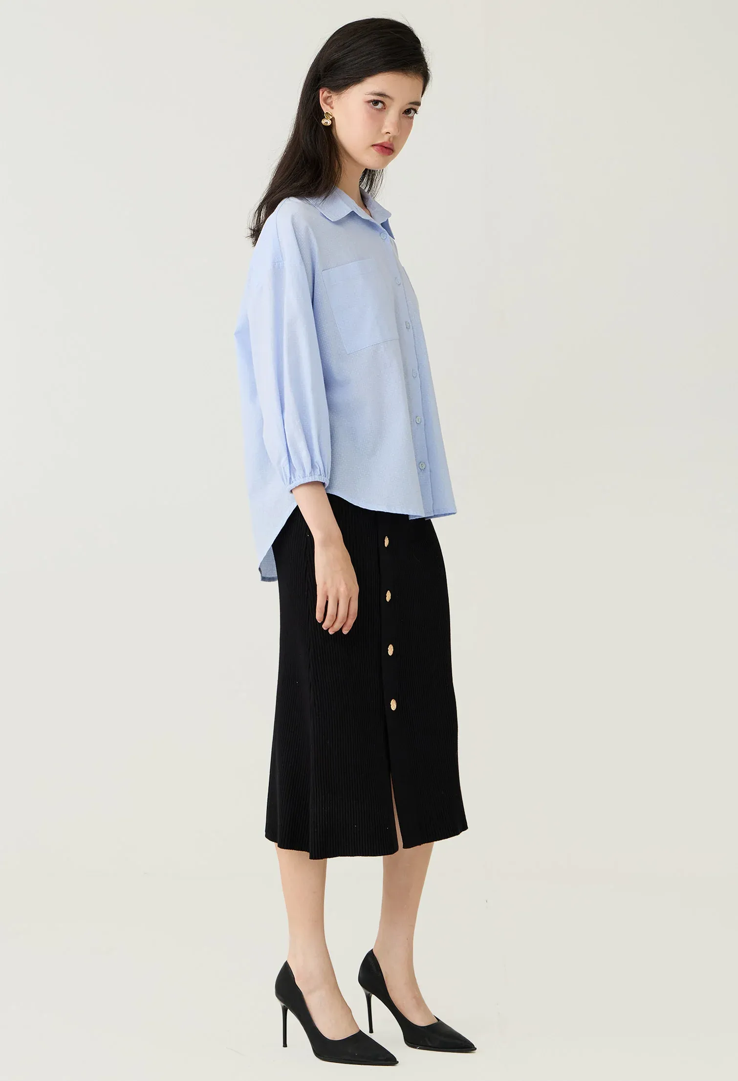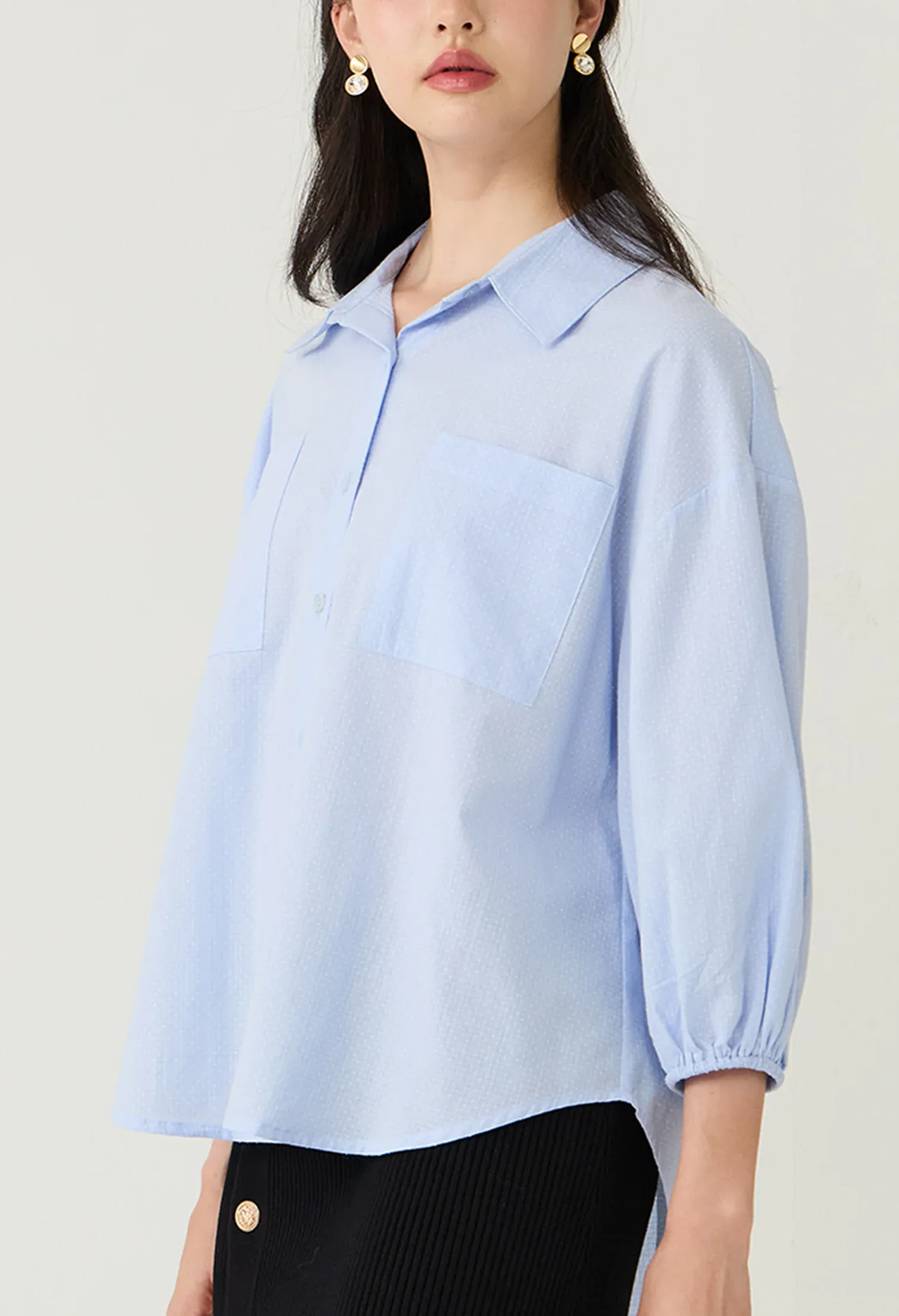 Home New Arrivals Dotted Texture Midi Sleeve Blouse