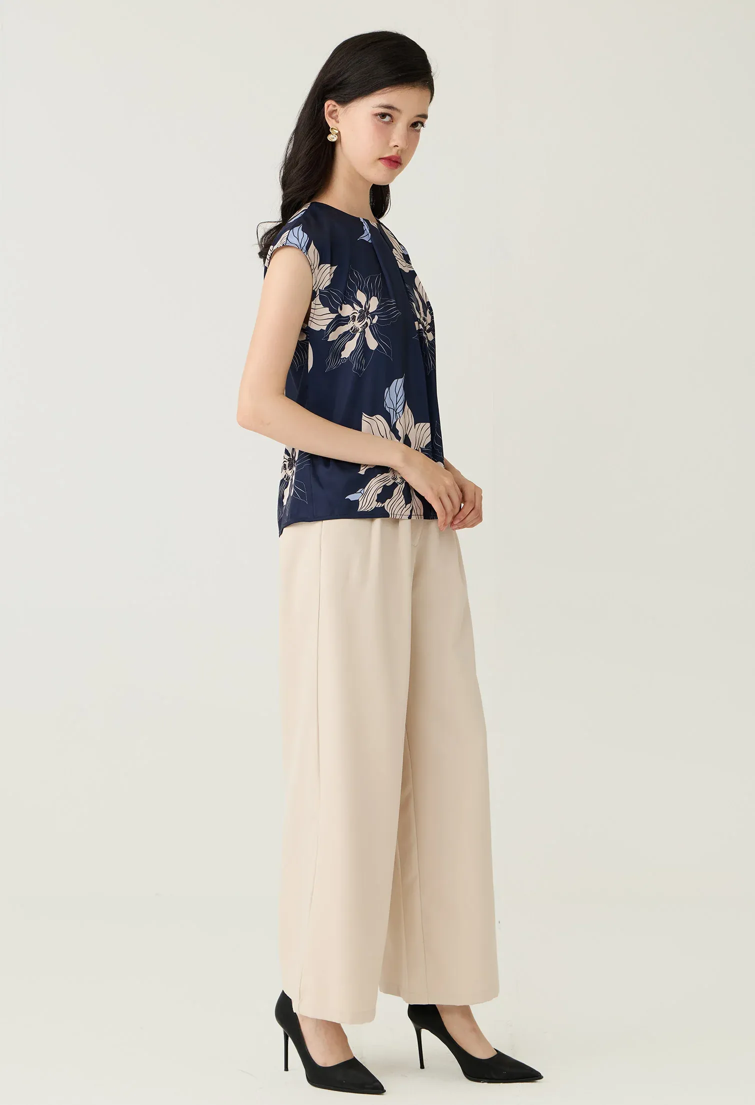Home New Arrivals Navy Floral Printed Layered Pleat Blouse