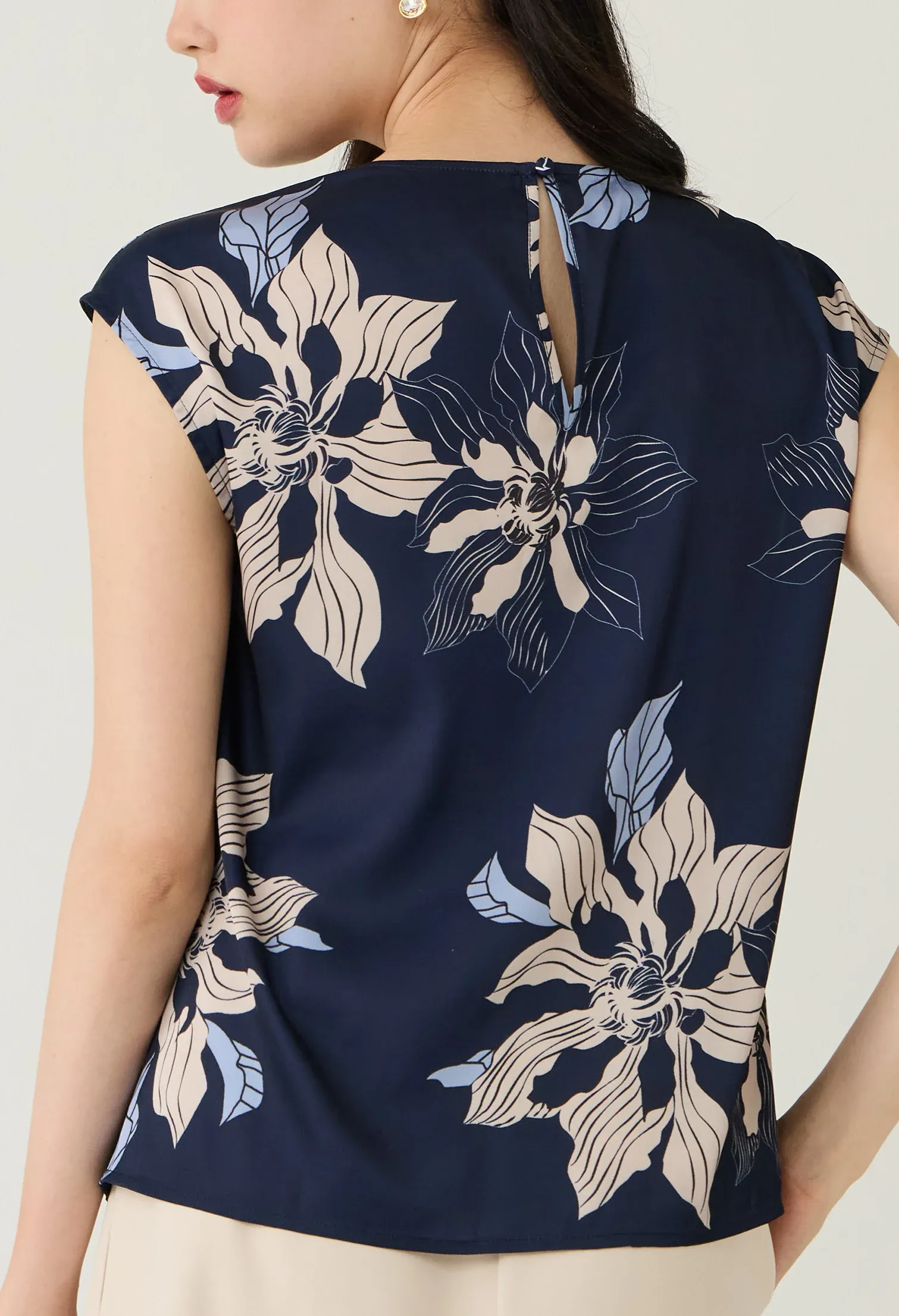 Navy Floral Printed Layered Pleat Blouse