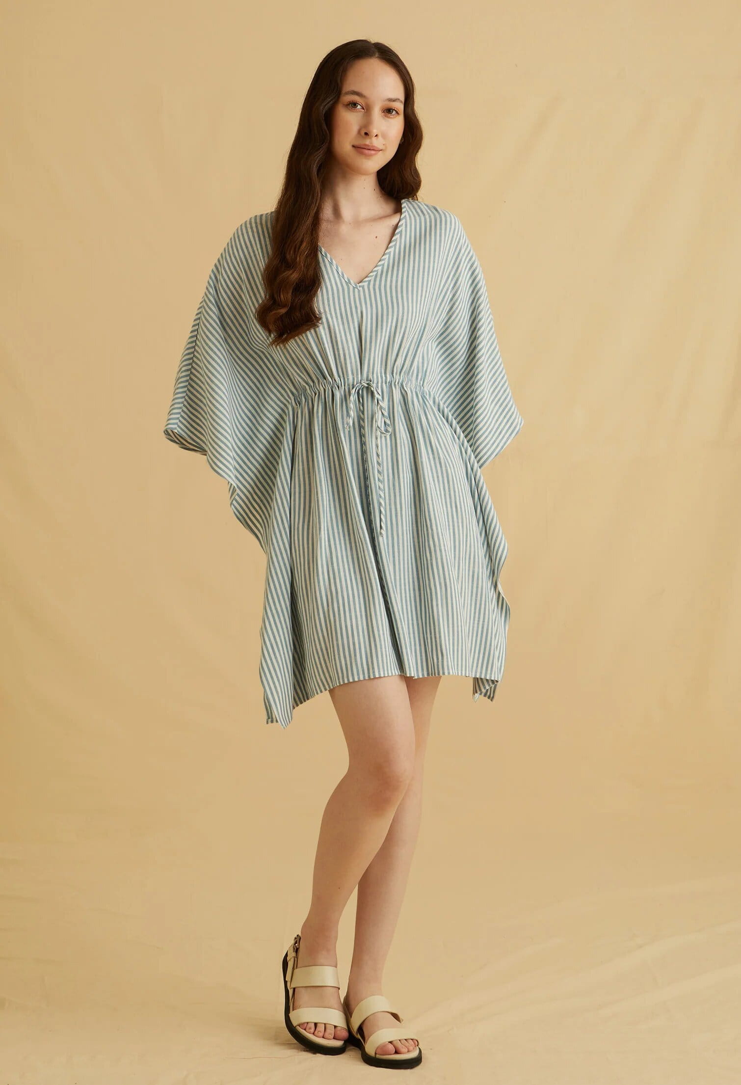 Vacay Leaf Motif Tunic Tie-waist Dress