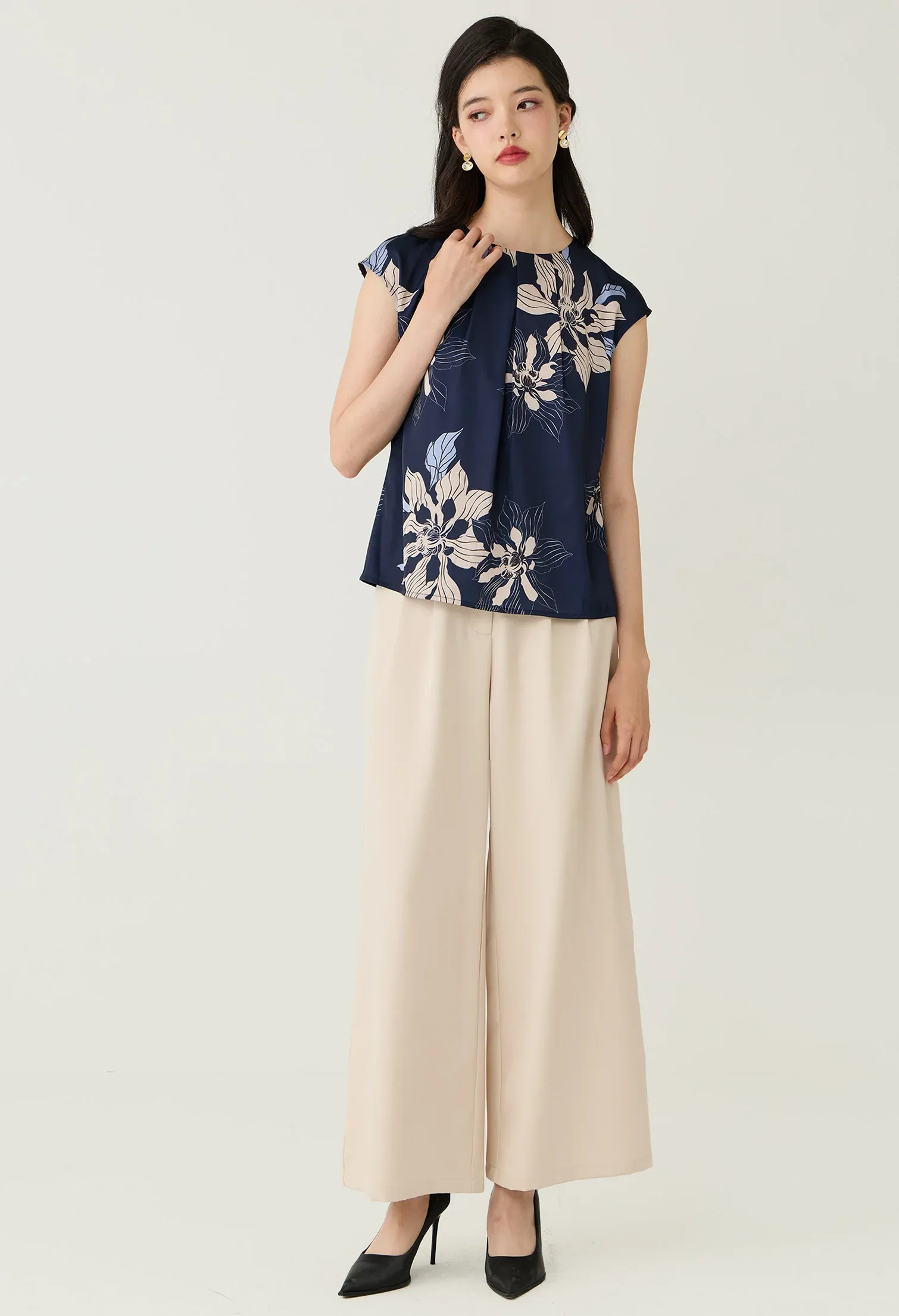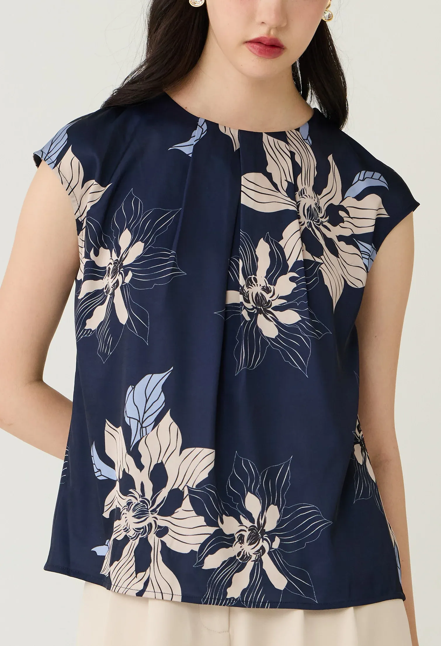 Home New Arrivals Navy Floral Printed Layered Pleat Blouse