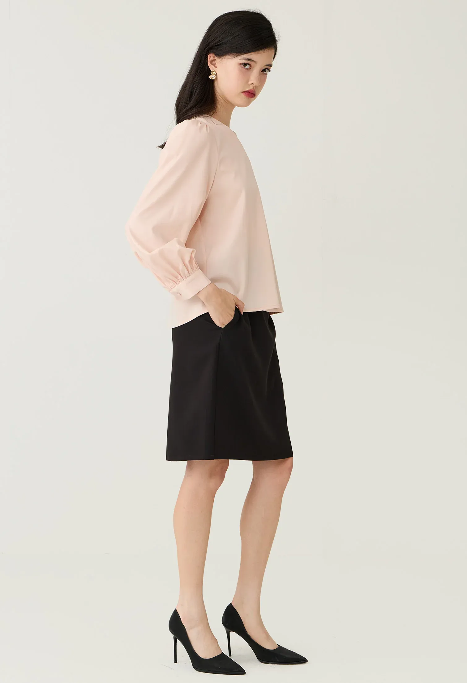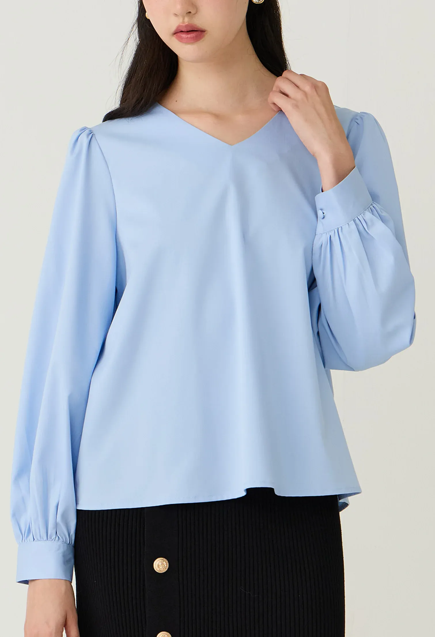 Relaxed Fit Gathered Shoulder Blouse