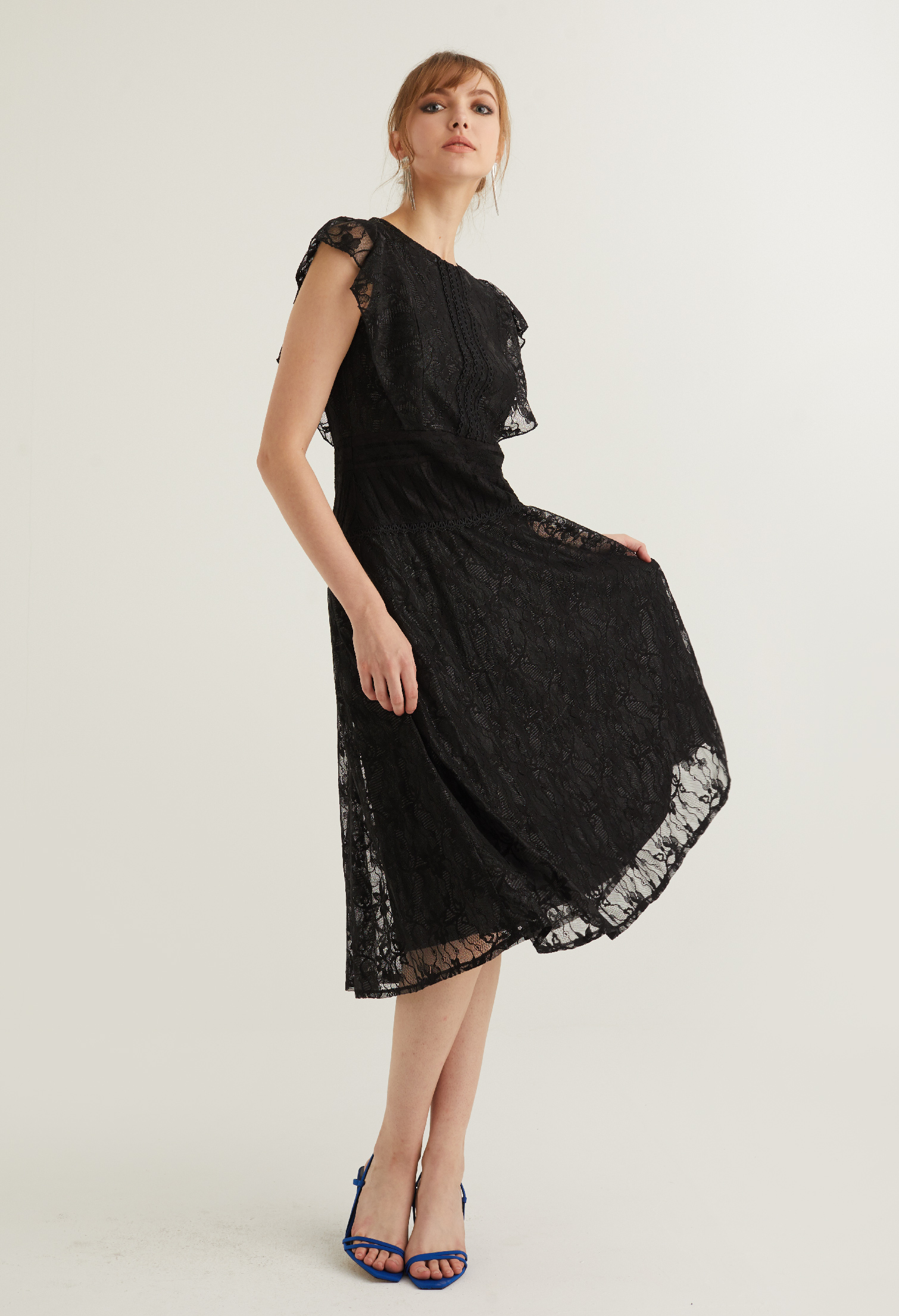 Ruffle Lace Detail Cocktail Dress