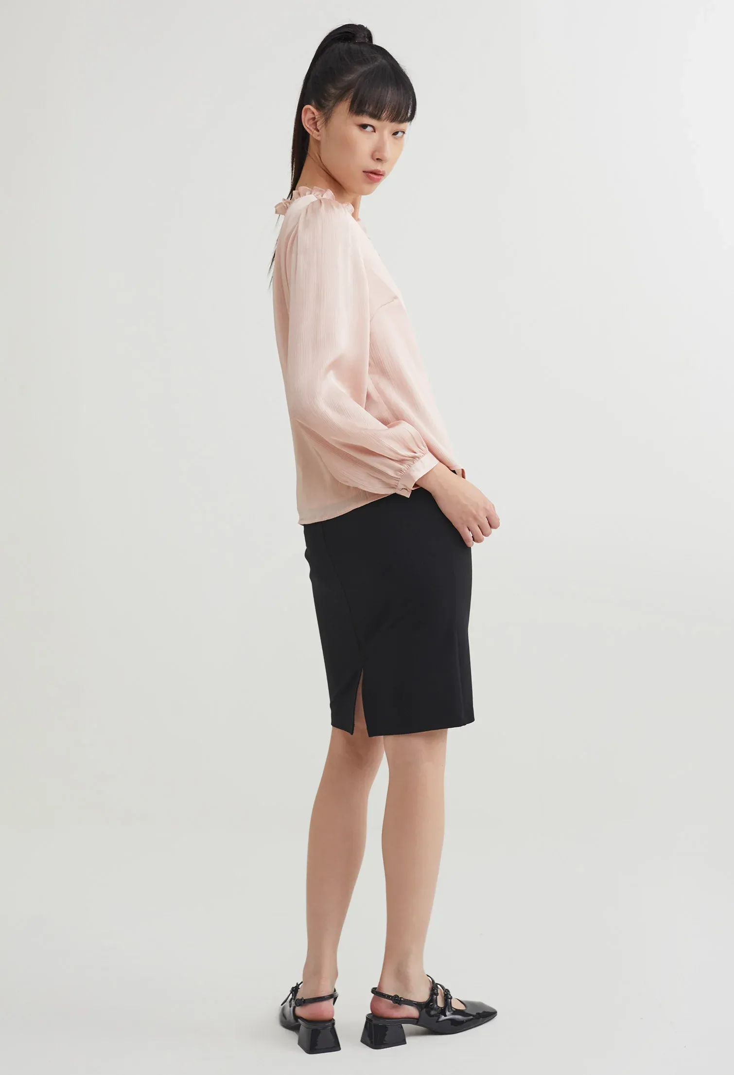Ruffled Faux Wrap Long Sleeve Blouse